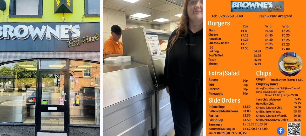 Indulge in the best fish and chips at Browne’s Fast Foods in Dromore! With a casual atmosphere and friendly staff, enjoy quick bites, late-night food, and a kids' menu. Perfect for takeaways, deliveries, or dining in. Open daily, we're your go-to spot for delicious meals at affordable prices.