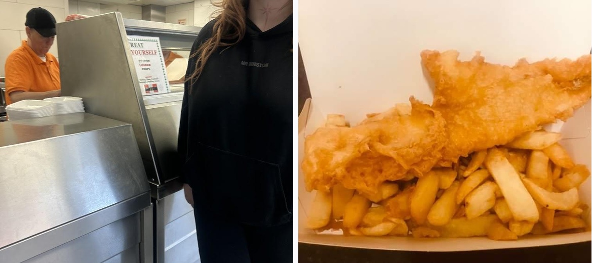 Fish and chips perfect fresh not greasy the pasties are gorgeous. Such lovely polite staff.